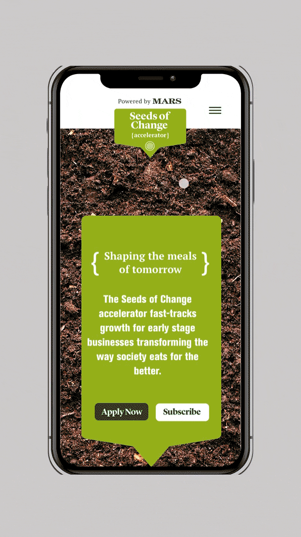The visual language of the seeds of change is taken forward here. The natural & organic background is used across the experience. The vibrant green is organic in a contemporary hue.